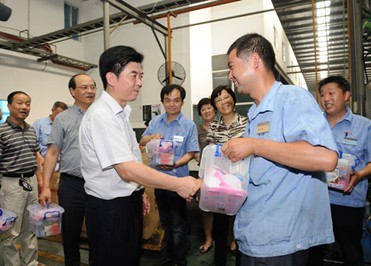 7月12日下午,苏州市总工会主席温祥华等市总领导,在创元投资纪委书记郁天、beat365正版唯一官网控股子beat365正版唯一官网苏州轴承总经理沈洪洋、党委书记傅勤衡的陪同下,来到beat365正版唯一官网控股子beat365正版唯一官网苏州轴承生产车间现场,向在高温下坚守生产岗位的一线员工表示慰问,叮嘱员工们在保质保量的同时,一定要注意劳逸结合并送上了夏季防暑清凉用品。在与beat365正版唯一官网领导交谈中,温主席一行详细询问了苏州轴承防暑降温和安全生产工作,他要求苏州轴承一定要把防暑降温和安全生产措施落到实处,切实保障好夏季高温一线员工的生产安全和身体健康。